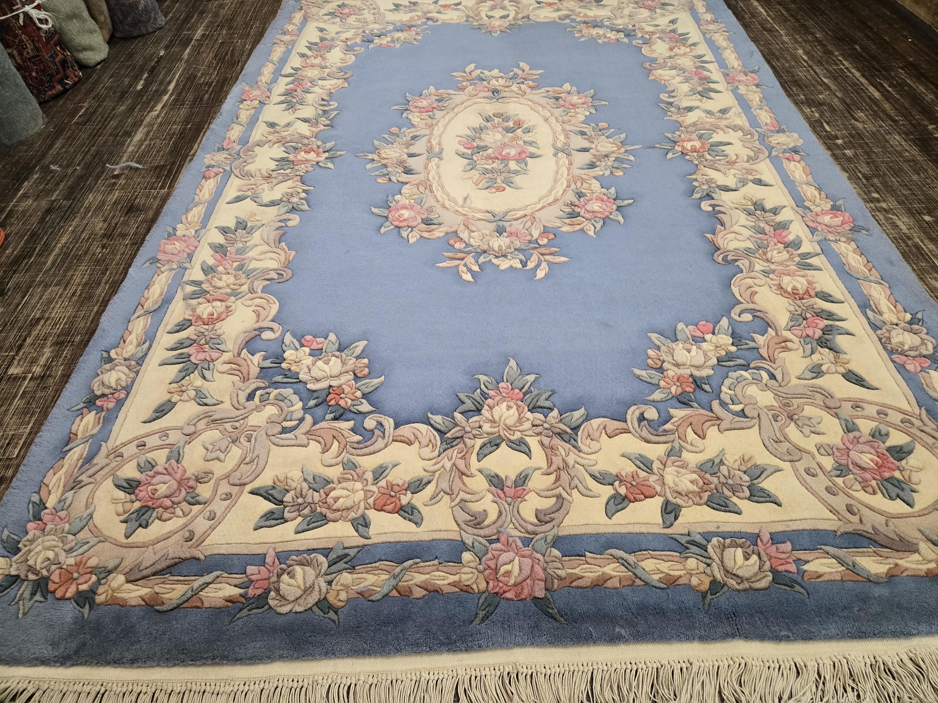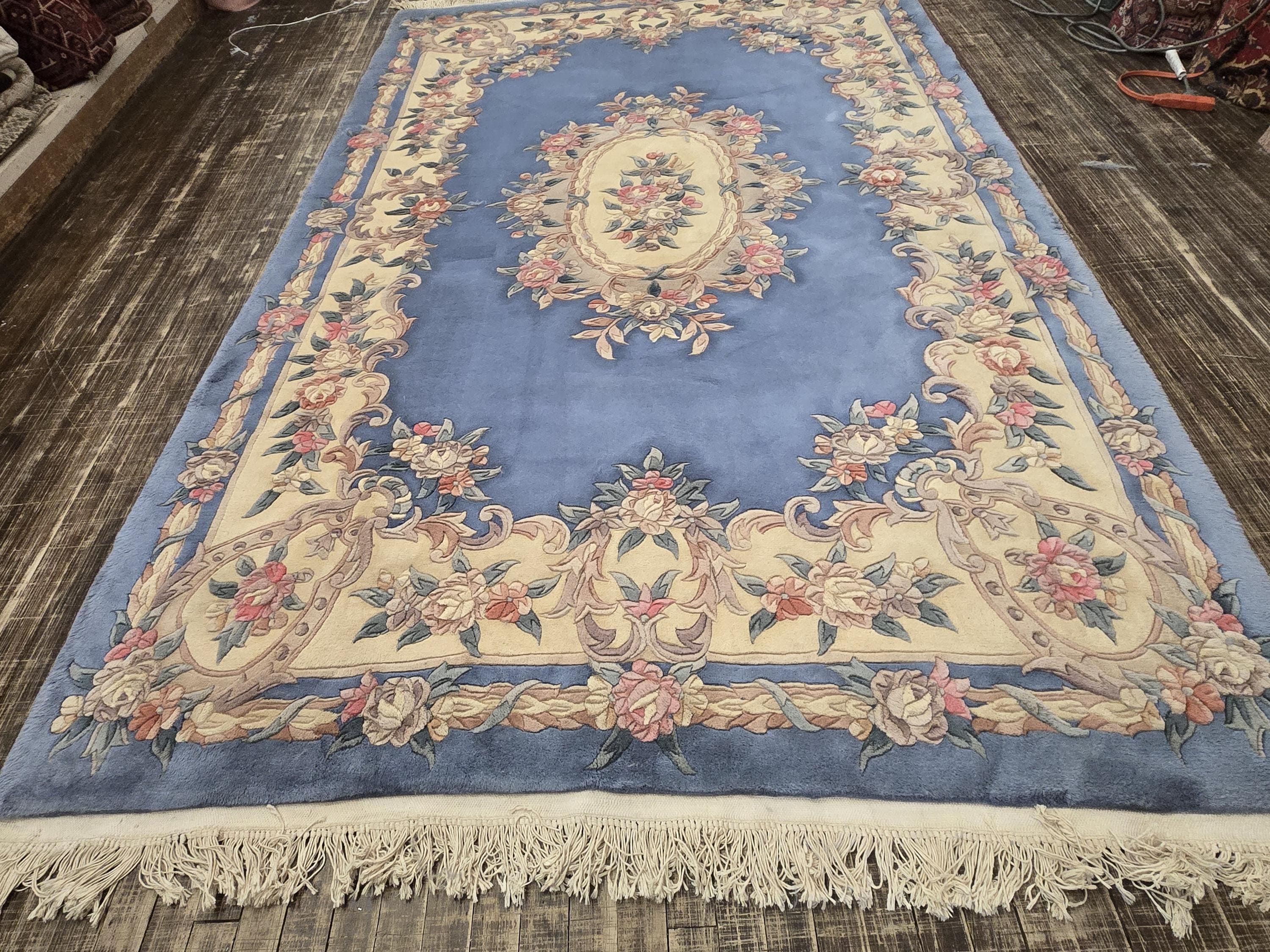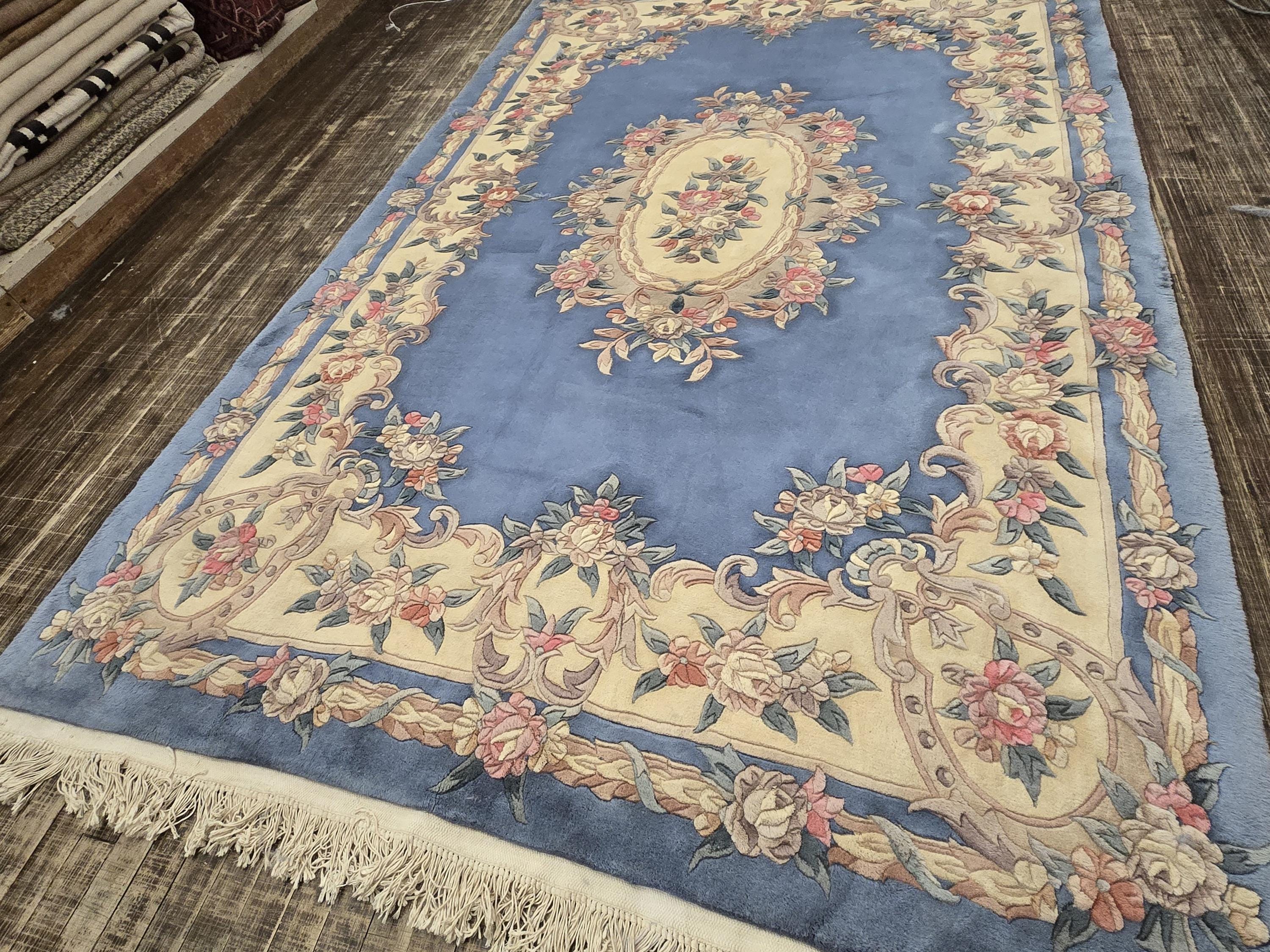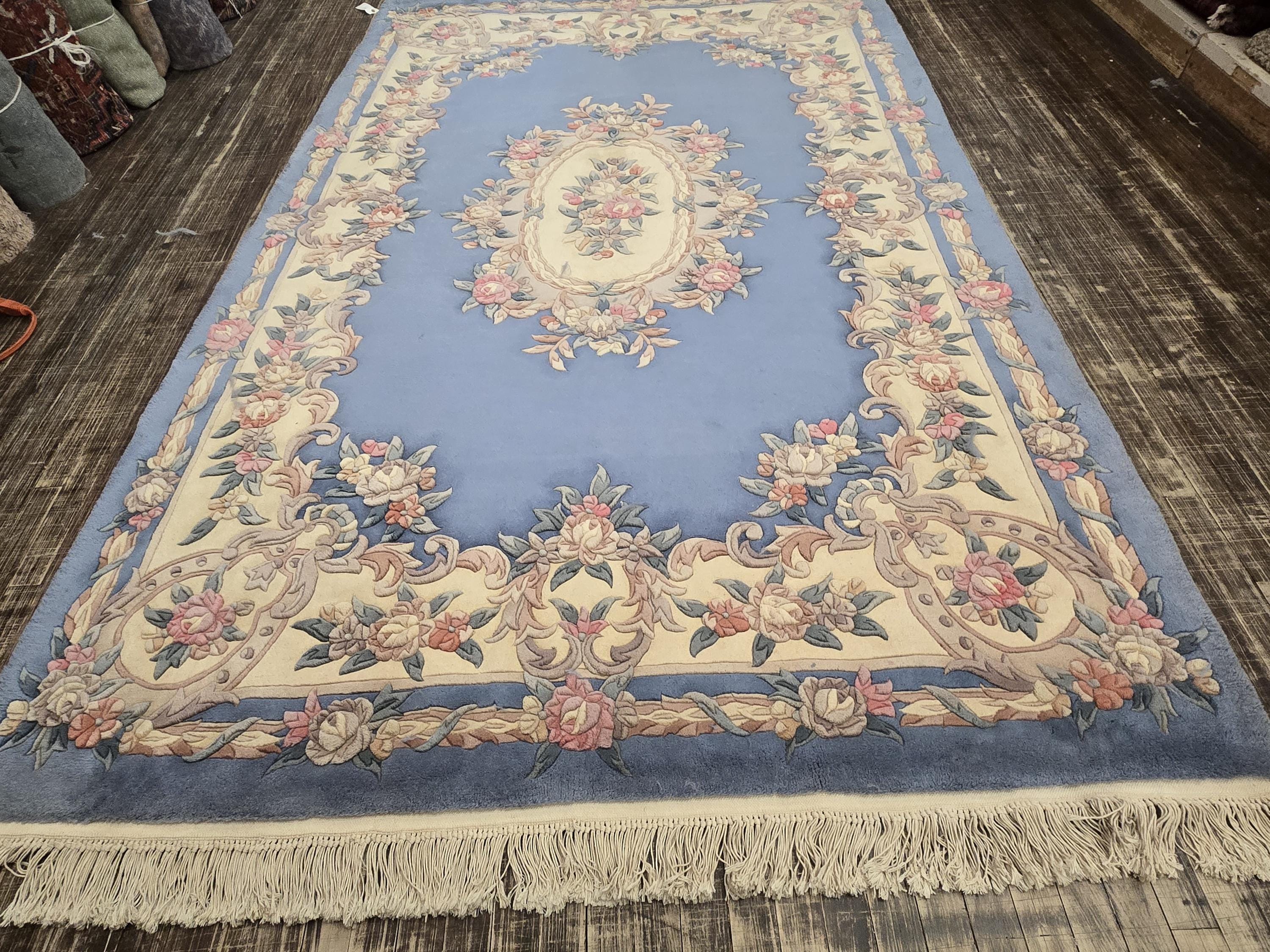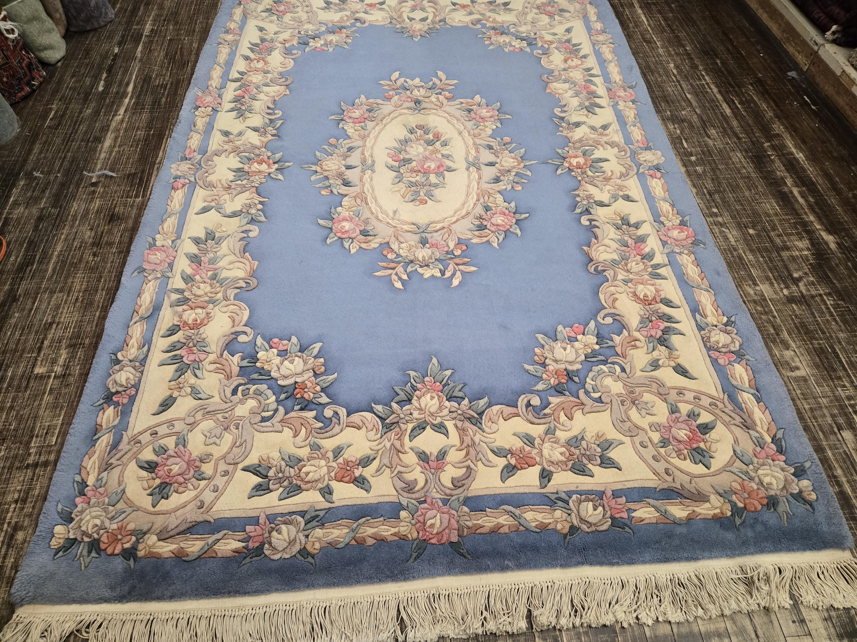 Chinese Art Deco Peking Rug Aubusson Chinese rug wool Chinese rug Peking rug blue rug wool Chinese rug blue savonnerie carpet 6'×9' #468